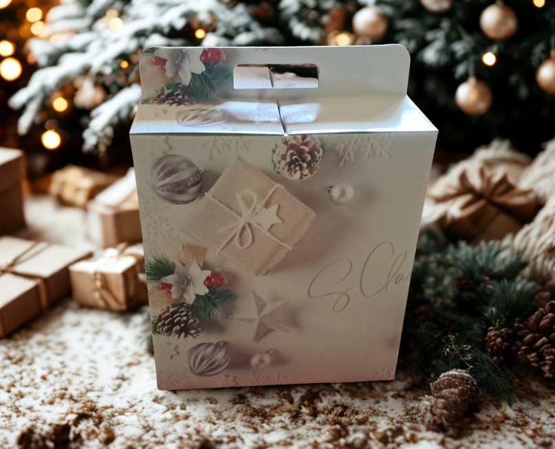 Il nostro pregiato Riso Carnaroli, simbolo della tradizione gastronomica italiana, è racchiuso in un elegante sacchetto natalizio* decorato con un raffinato motivo festivo e impreziosito da una decorazione natalizia