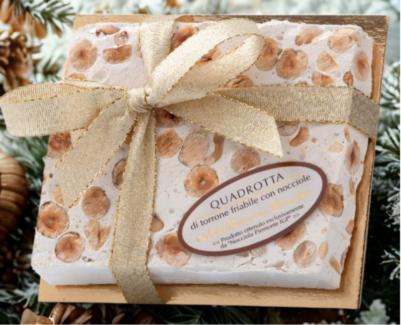 Un dolce che racchiude tutta la tradizione delle Langhe. Friabile, realizzato con miele, zucchero e un’abbondanza di Nocciola Piemonte IGP, presentato su un elegante vassoio con fiocco oro e personalizzazione ADMO Prodotto da Antica Torroneria Piemontese, 150 gr.
