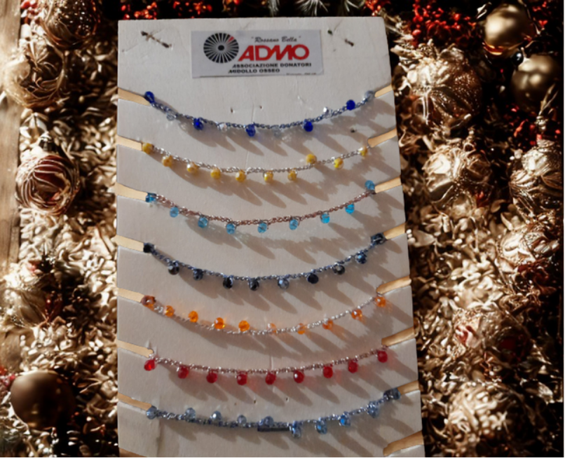 Ogni creazione di questa collezione รจ realizzata a mano dalla mamma di una ragazza trapiantata di Midollo Osseo. Con amore e riconoscenza, questa madre ha trasformato lโesperienza di rinascita della figlia in un gesto concreto di solidarietร ., lavorando con dedizione affinchรฉ tanti altri pazienti possano trovare un donatore.